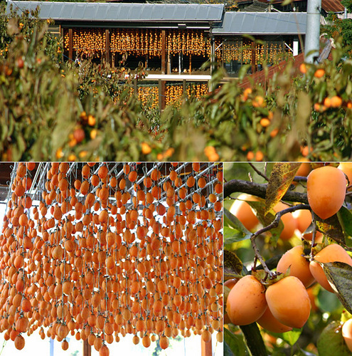 1枚目は、ほし柿のすだれと柿のアップ