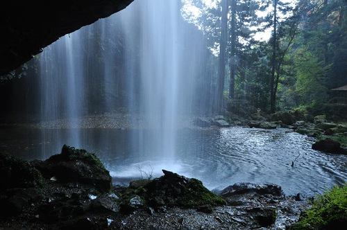 この滝の裏側は「裏見の滝」と呼ばれ、百畳敷きの岩窟があり、自然の作り出す珍しい造形が見られます。