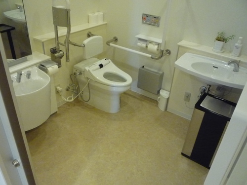 以前も車いす用のトイレが館内にありましたが、少々狭い作りになっていました。