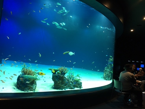 すごく癒されます。私のお勧めは中央のラグーン水槽のエイと