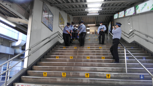 見学と、駅係員の皆さんによる、車椅子の階段昇降訓練がありました。