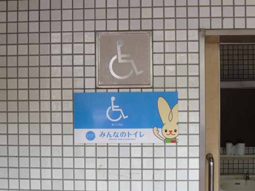 呉に観光に来たみなさん、かわいいうさぎさんの看板がトイレ看板ですよ〜。ぜひご利用ください。