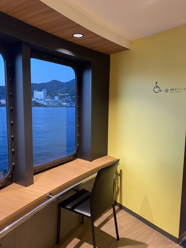 バリアフリーエリアもありますが、途中寄港地となる呉港からの乗船で、