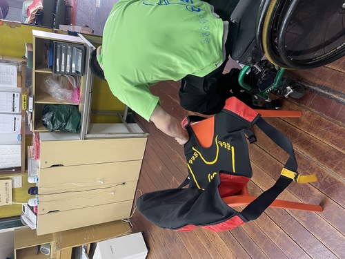 避難開始当初は私が乗ったままの車椅子(手動・約70kg)を男性2人で担ぎ、