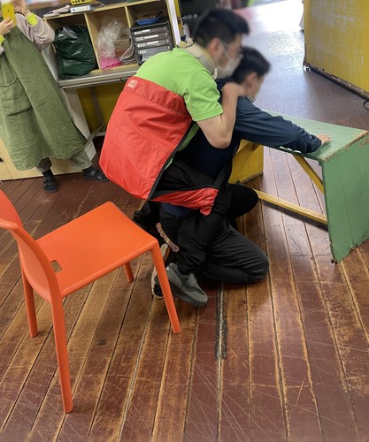 訓練開始直後、同じ建物の職員さん2人が避難のお手伝いに来てくださいました。