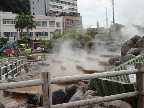 公園の側では、湯けむりが。