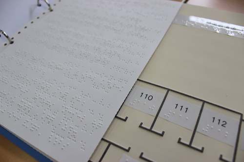 先日、点図館内案内図作成をお願いしている 視覚障害者支援部”てんとうむし” の皆様が下見にこられました。
