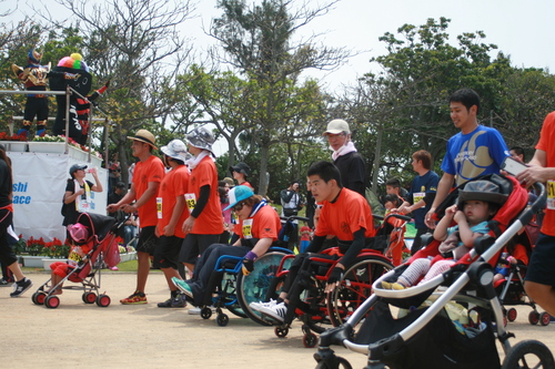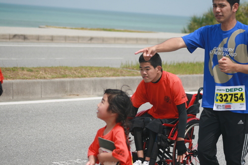 昨日うるま市の海中道路でマラソン大会が行われ、今年も「そら」の児童と「sorato」のメンバーが出場しました。