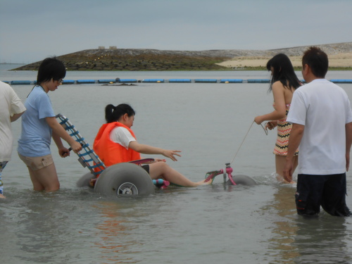車イス介助の方法の他、クリアカヌーとチェアボートという水陸両用車イスを使って