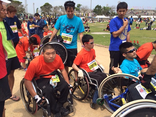 昨日うるま市の海中道路でマラソン大会が行われ、今年も「そら」の児童と「sorato」のメンバーが出場しました。