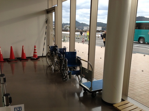 昨日はゆうあいの出張で久々の隠岐行き。自治体向けのアクセシビリティ推進セミナーでした。2年ほど前、平成22年8月に、隠岐の島、西郷港のフェリーターミナルの改修がされたということを聞いていましたが、実際に改修後の様子を見たのははじめてです。建物2階(フェリーの待合)フロアには、ピカピカで、広々の多目的トイレが2か所、授乳室も用意されており、隠岐汽船のやる気を感じました。貸し出し用の車いすもありました。