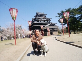 お花見会のちょっと前に松江城公園内を歩き、階段を上がって松江城へ。