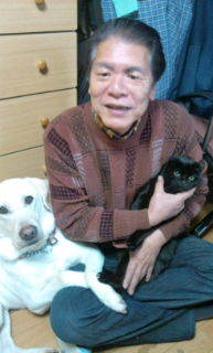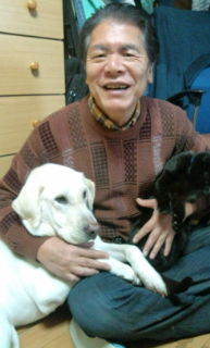 アラン君と猫のムサシ君と一緒に写真を写しました。