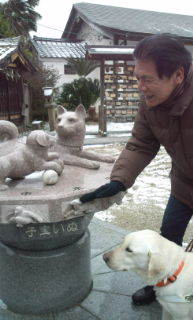 神社の石段など、わりと凍みて滑ったりしていましたが、アラン君良い歩きをしてくれました。