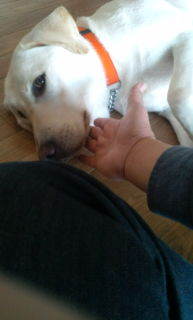 アラン君、ラブラドールリトリバーで牡です。 来年1月20日で2歳になる元気な子です。とても頭の良い子です。いろいろな物に興味を持っていますので、様子を見ながら歩いています。
