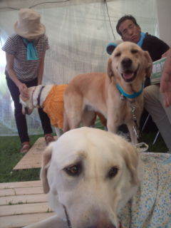 写真を2枚のせます。盲導犬ふれ合いコーナーの写真です。