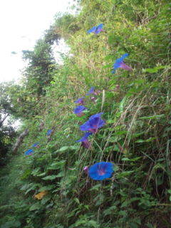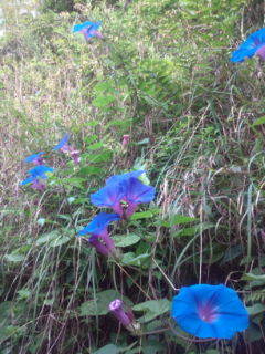 アサガオの色は朝はブルー、だんだんピンク色に色が変わってゆくみたいです。