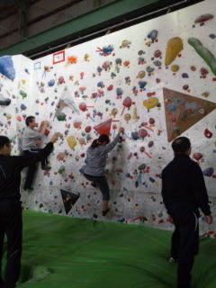 視覚障がい者12名、サポーター12名のかたの参加で、参加されたかた、楽しくクライミングを体験されました。