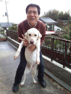 昼食を食べてから、アランくんの写真をなん枚か写しました。アランくんのお父さん、パピーウォーカーさんにもお電話しました。
