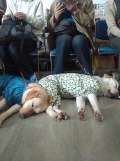 当日は松江市の4頭の盲導犬も参加してボランティアの皆様と一緒に会場で大きな声を出してご来場者の皆様に訴えました。