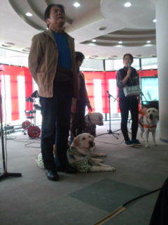 、午後1時45分から2時まで、1階の小ステージで盲導犬の実演などもおこなわれ、盲導犬ユーザーも自己紹介や思いを伝えました。