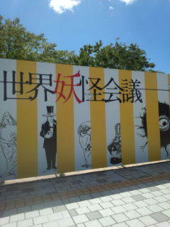 世界妖怪会議の看板 60体以上の妖怪が集合しています