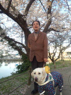 県庁前のお堀横の桜の木の下で、アランと一緒にパチリ