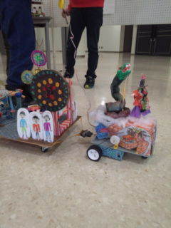 チャレコン作品、展示物 どうを引く車の装置。2枚の写真をのせました。