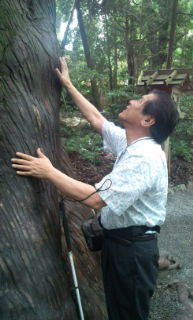 伊勢神宮で木を触りました。