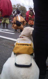 武者行列の様子の写真2枚。併せて3枚の写真を載せました。