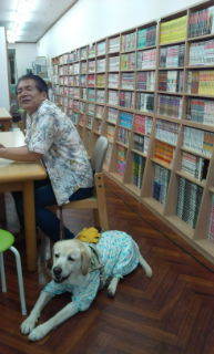もう1枚の写真は、本棚の前で、としまる&ノアの写真です。