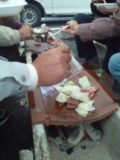私達は いろいろ分かれて昼食を取りましたが、 焼き肉コーナーでは おいしい吉田牛の焼き肉!