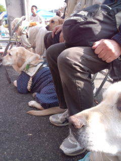 ナナカマドフェスタ!島根ハーネスの会、盲導犬たち4頭並ぶ!