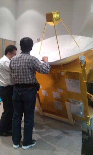 その3では、 昨日組み立てられつつある、小惑星探査機「はやぶさ」の実物の大きさだそうです。