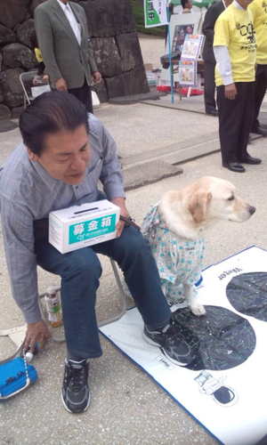 募金活動は午前10時30分から開催され、午後12時に終了しましたが、 松江城に来られたたくさんの皆様から、盲導犬育成募金に沢山のご寄付をいただきました。