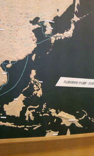 次に触らせていただいたのが「仏教伝来」や、取材地を示した大きな世界地図で横が3メートルくらいあったのではないでしょうか時間が無くそんなに触れませんでしたが、 仏教伝来の地、取材をされた地には触ってよくわかる 突起がでていました。