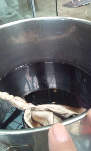 草木染めをしている時の写真 煮詰めている所でしょうか?