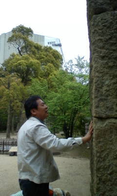 途中で 石垣に触ったり、 壁などにも触ったり、 門などには家紋がはいっています。いろいろな物を触りながら歩きました。