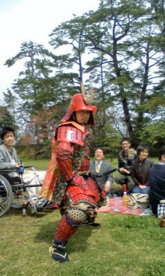 3枚の写真を載せました。 最初に来られたのが 赤い色の鎧を着られた松江若武者さん。 後で来られたのが黒い色の鎧を着ておられるまつえ若武者さんではないでしょうか!