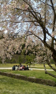 4月、桜の花が満開を終えた頃お花見に出かけました。 お花見といってもみんなでおべんとうを持ってお昼休みに松江城に行きお弁当を食べました。 とても天気の良かった日です。