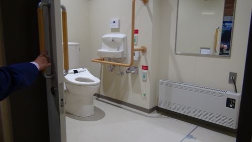 今回はまだトロッコの完成品がないので、車いす用トイレを中心に見させていただきました。