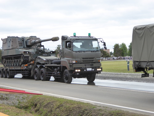 創立記念行事の訓練展示(模擬戦闘)の銃器・戦車砲・榴弾砲などの空砲射撃訓練がみれました。