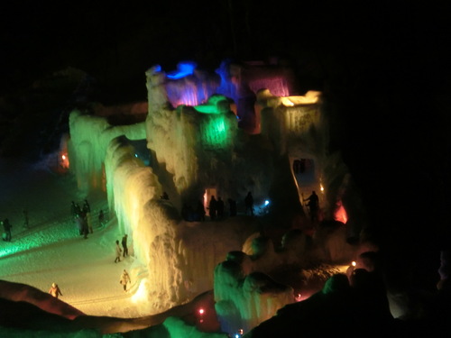 7色の光でライトアップされた大小30基の氷像幻想的でした。