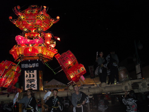 高さ約7メートル、重さ約5トンの大型あんどん同士が激突して壊しあい迫力満点でした。