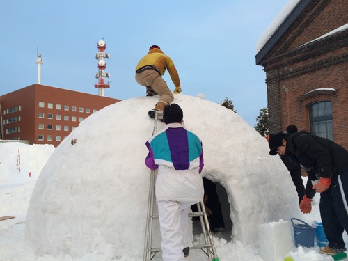 写真1枚目:イグルー製作