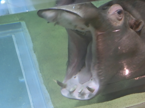 次にかば館プールで泳いでるかばを色んな角度から至近距離で観察ができて