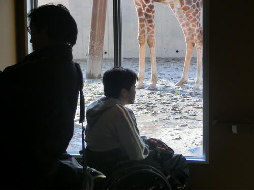 きりん舎では、2頭のきりんが木の葉を食べる様子が目線観察できました。