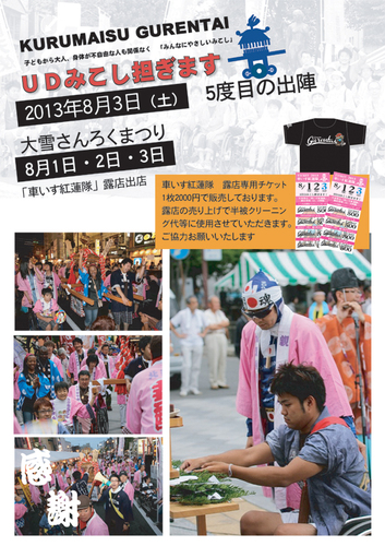 3日の夕方 まつりのクライマックスでUDみこしを担ぎます!!