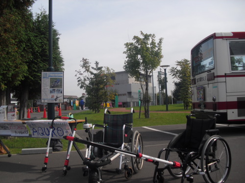 チーム紅蓮では、障がい者スポーツ(エコロベース)体験ブースではJINRIKIと電動AQURO体験たくさんの人が体験してくれました。