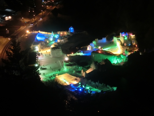 夕食を食べてからホテルの7階から氷爆まつりの会場が見えるので入ってきました。